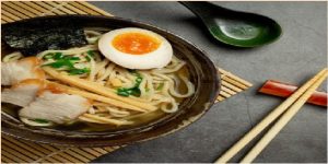 shoyu ramen berkaldu cokelat dari daging ayam atau ikan, dengan banyak kecap asin,
